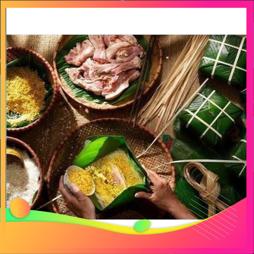 Lớp gói (Tượng trưng cho Đất/Thiên nhiên): Lá dong (hoặc lá chuối ở một số nơi), giúp tạo hình và màu xanh cho vỏ bánh.