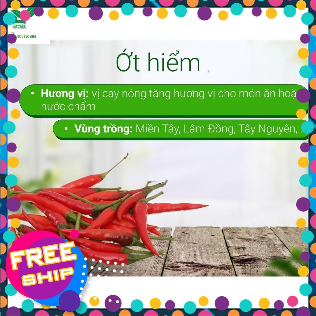 Ớt hiểm Phong Thuý gói 50g luôn duy trì độ tươi tốt mỗi ngày và được nuôi trồng theo quy trình nghiêm ngặt, đảm bảo an toàn và chất lượng. Với vị cay nồng và mùi thơm đặc trưng, ớt là một trong những gia vị không thể thiếu trong nấu ăn và mâm cơm của người Việt. Ngoài việc mang lại hương vị đặc biệt, ớt còn có nhiều công dụng bất ngờ cho sức khỏe.